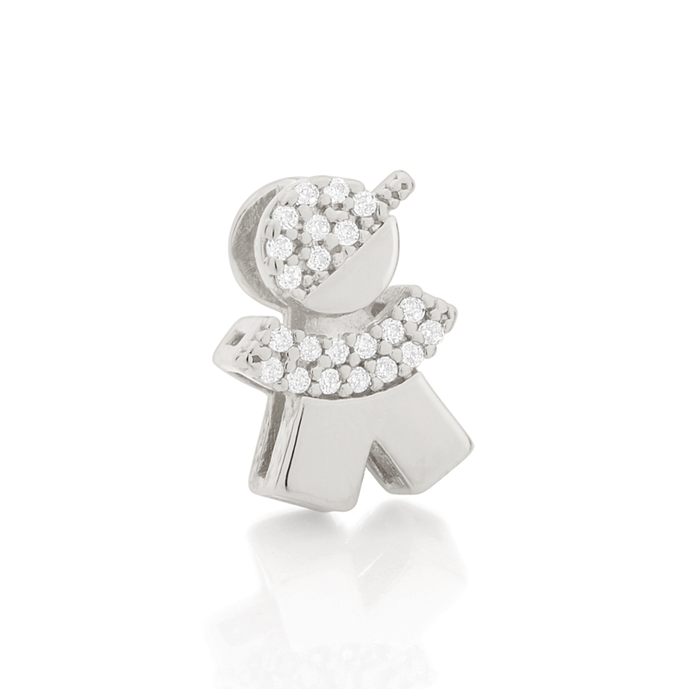 Pingente no formato de menino, composto por 22 zircônias de 1 mm.