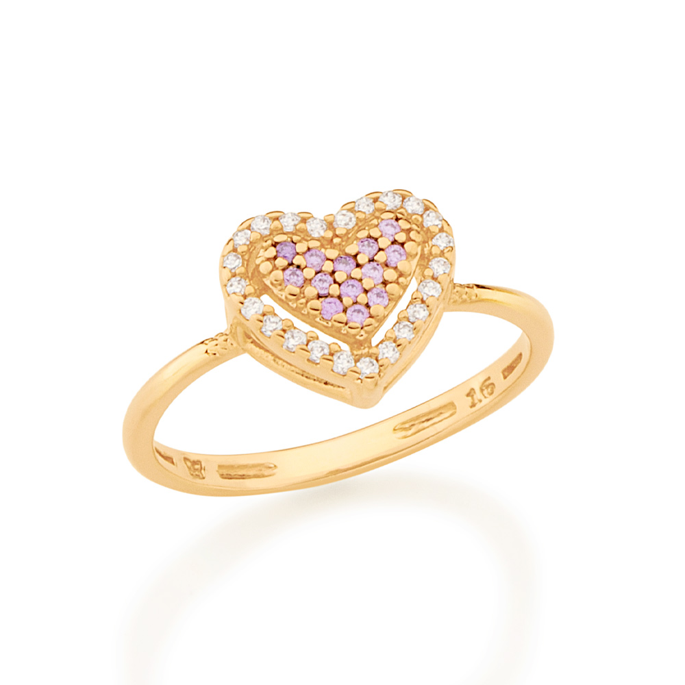 ANEL CORAÇÃO BANHADO A OURO 18K COM ZIRCÔNIAS