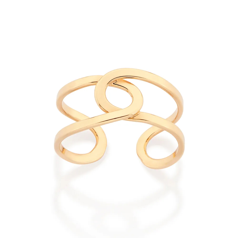 Anel ajustável aro duplo vazado e entrelaçado.