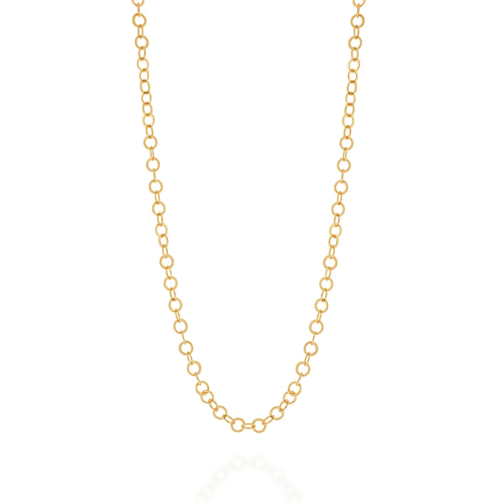 Gargantilha formada por corrente de elo cadeado laminado fio 0,7 mm.