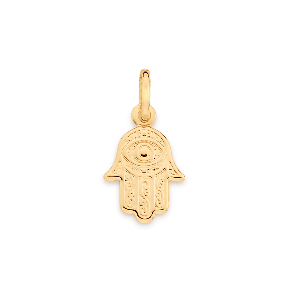Pingente formato mão de hamsá. med 1,9 cm x 1,0 cm